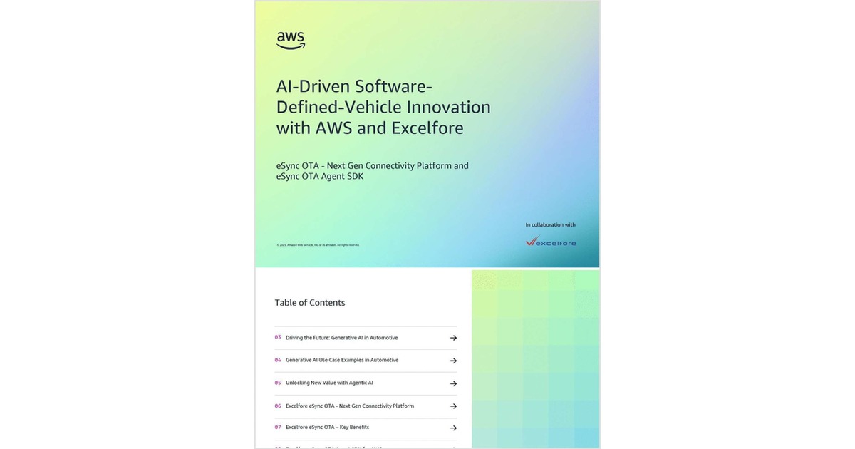 Automakers face pressure to speed development cycles while managing complex software. Generative and agentic AI offer ways to transform vehicle development, testing, and connected experiences. Excelfore’s eSync OTA platform on AWS enables secure, scalable updates and diagnostics. Download the white paper to explore AI-driven automotive innovation.