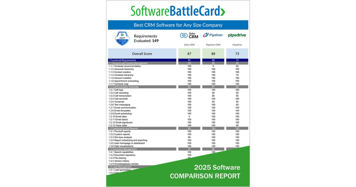 Find CRM software that can truly fit your business needs and budget. Get a free detailed BattleCard of these 3 CRM leaders and clarify your search with data-driven recommendations from our experts. See assistance details in this report.