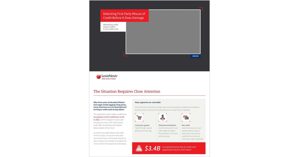 In today’s competitive lending market, a new high-risk applicant has emerged: consumers applying for credit with no intention to repay. This first-party credit misuse can be difficult to detect with traditional fraud detection strategies. These high-risk applicants often slip through the cracks because traditional credit scores are not typically designed to assess credit abuse, and they use their own valid identities to bypass standard controls. To avoid significant losses, you must adapt your risk assessment process.