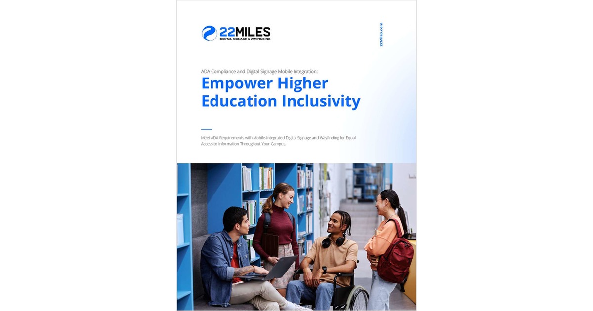 - Learn how 22Miles’ ADA-Compliant Digital Signage meets accessibility standards, ensuring an inclusive experience for all students while enhancing connectivity and accessibility across your campus.