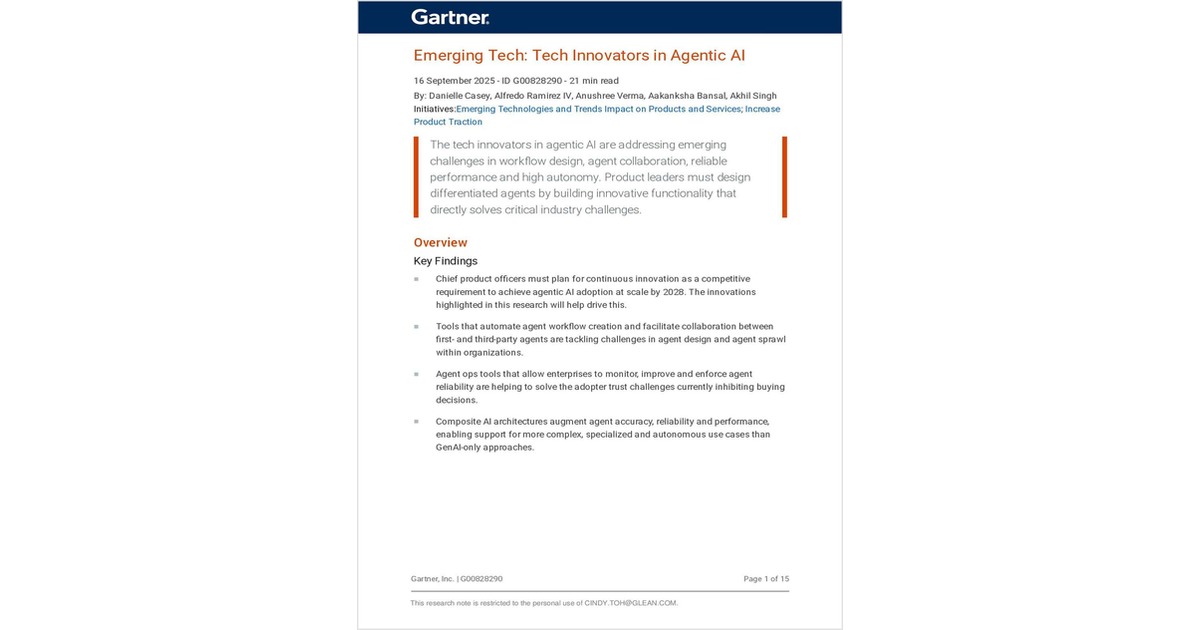 This in-depth report from Gartner® explores the latest innovations in agentic AI from leading technology vendors. It details how these innovators are addressing key challenges in workflow automation, agent collaboration, reliability, and autonomy.