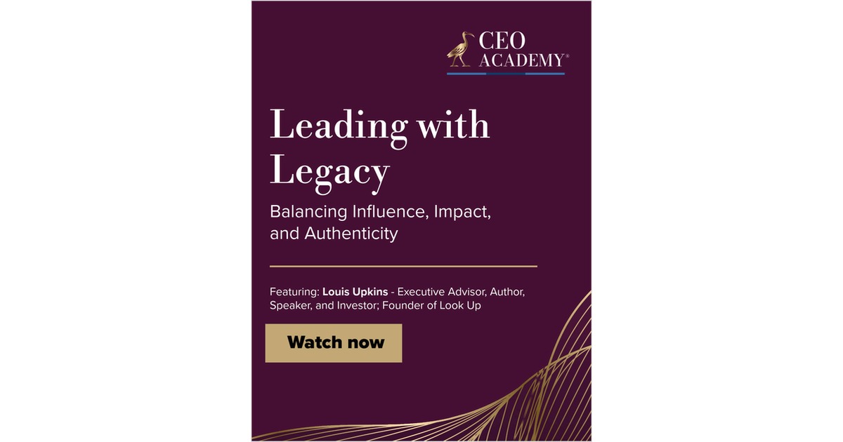 Watch Leading with Legacy to access peer-level insights designed for CEOs who want to move from transactional leadership to transformational legacy.
